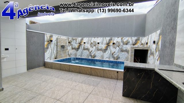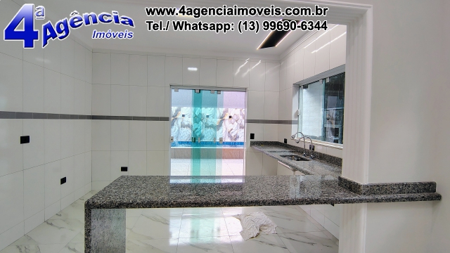 Banheiro Social com acabamento de primeira , garagem para 3 carros, área Gourmet 6mt x 2,8 mts com Churrasqueira grande e revestida em porcelanato, Lavabo externo na área de churrasqueira, piscina 2,90 mts X 5,00 mts X 1,40 fundo com Hidro, cascata e prainha, com acabamento em toda sua volta com Revestimento Marmorizado, portões, portas e janelas em alumínio branco.